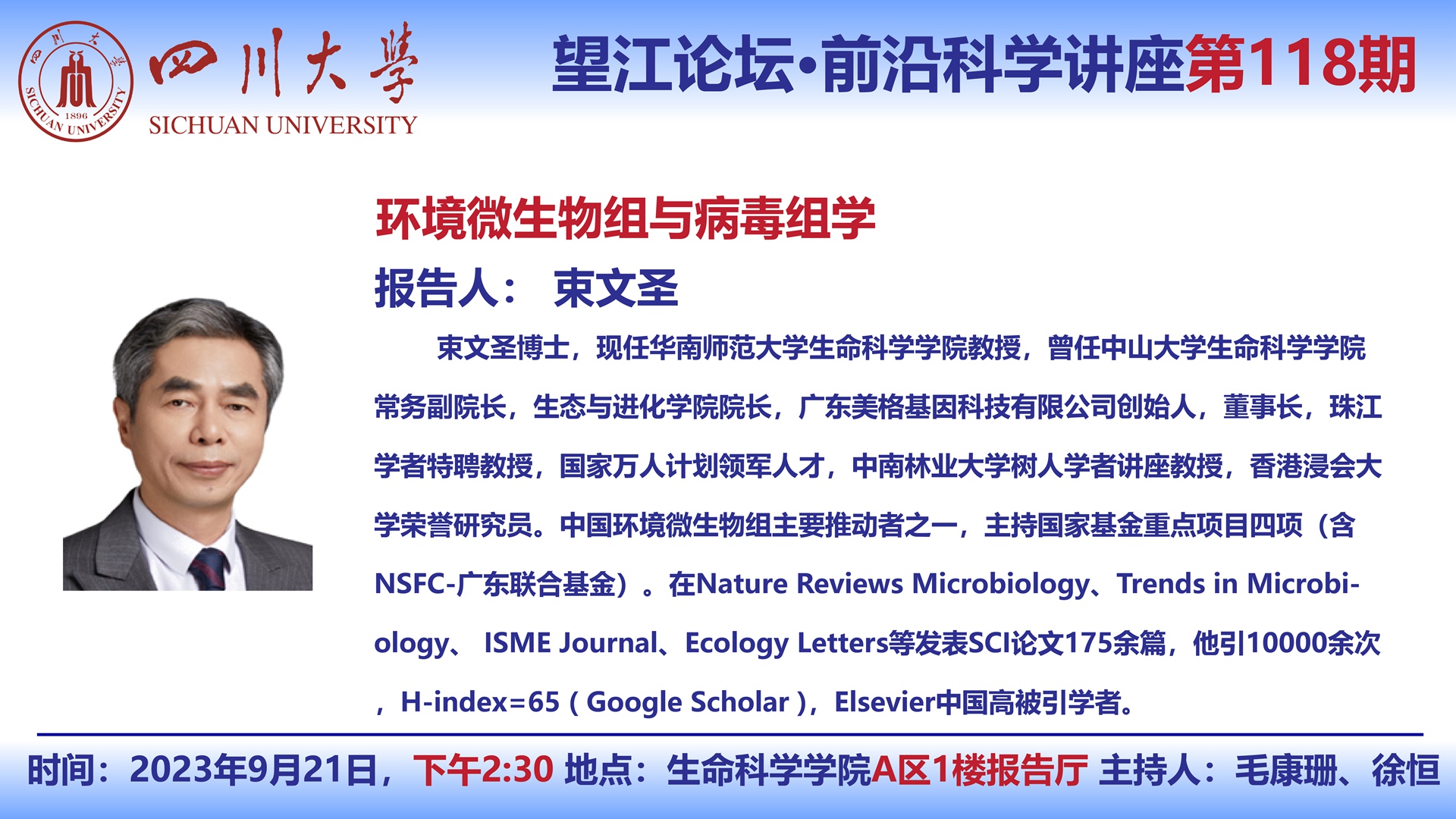 望江论坛-前沿科学讲座(第118期):束文圣教授9月21日学术报告