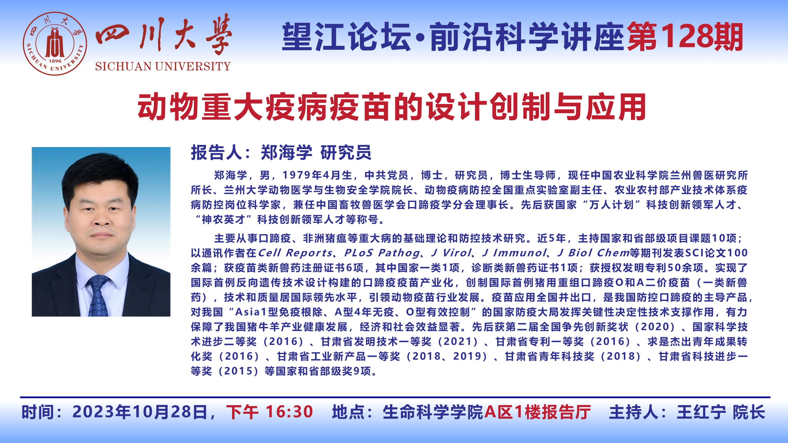 望江论坛-前沿科学讲座(第128期):郑海学研究员10月28日学术报告