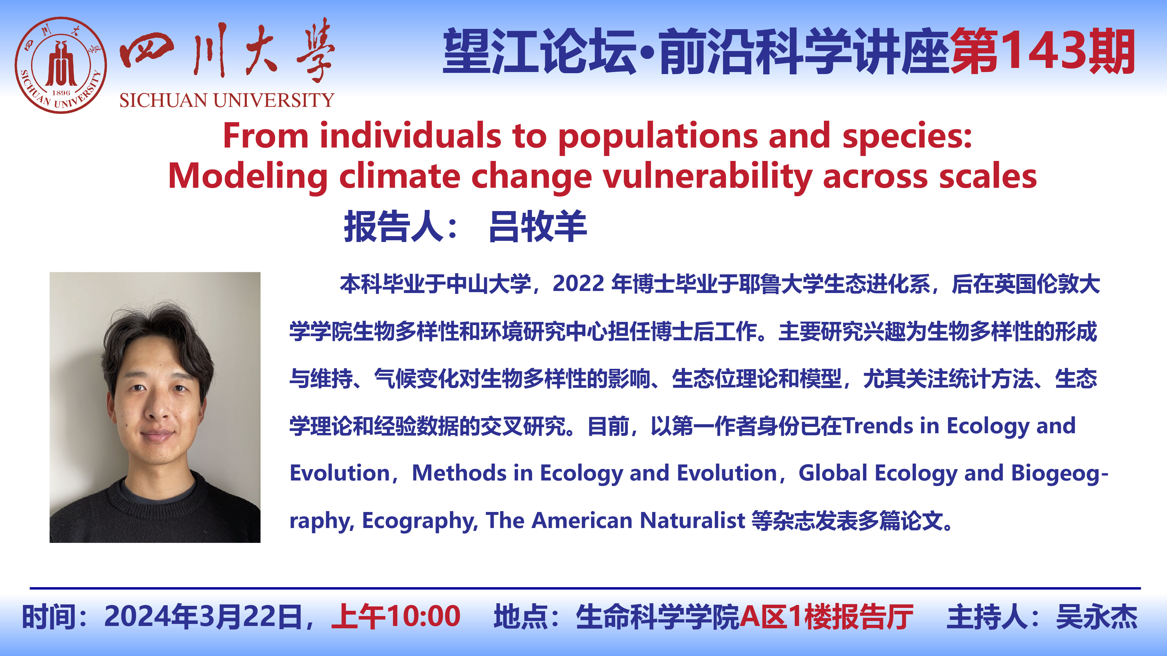 望江论坛-前沿科学讲座第(143期):吕牧羊博士3月22日学术讲座