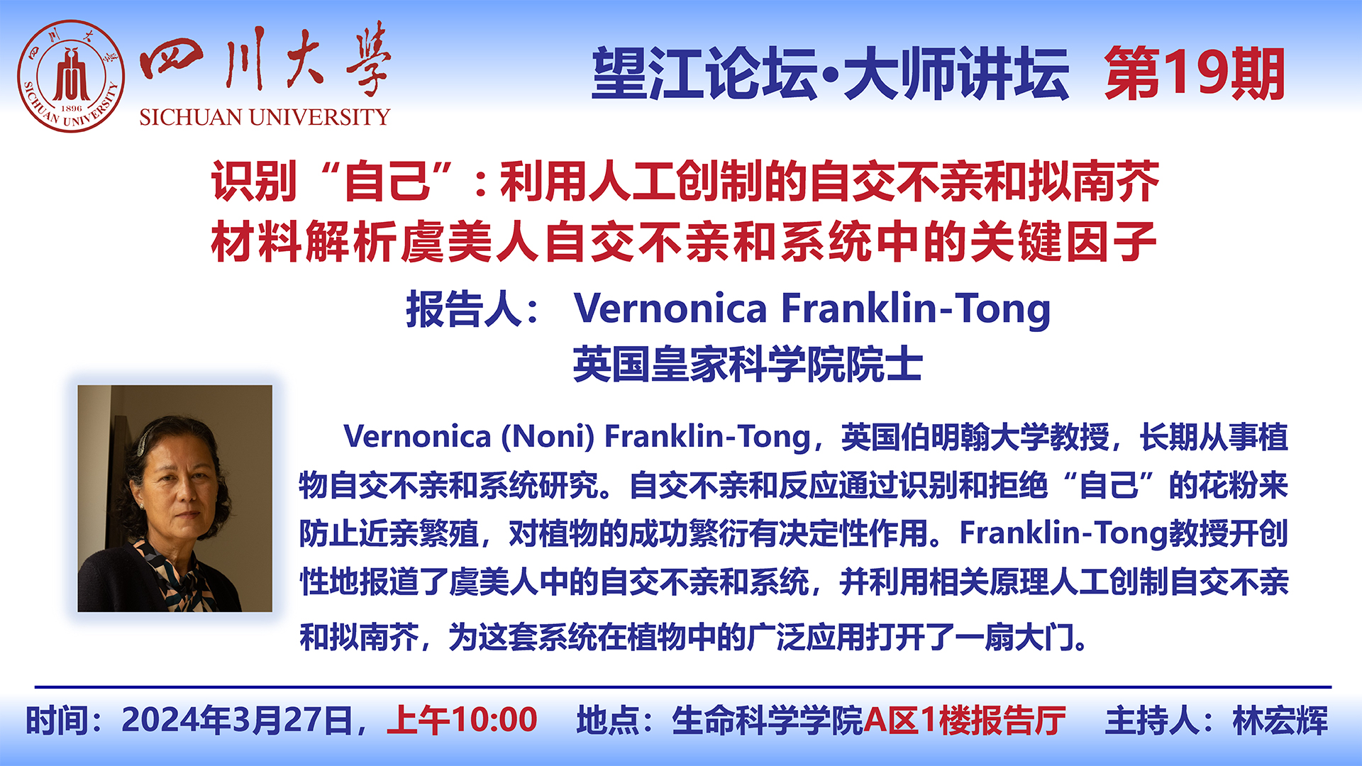 望江论坛-大师论坛(第19期):Vernonica Franklin-Tong 院士3月27日学术讲座