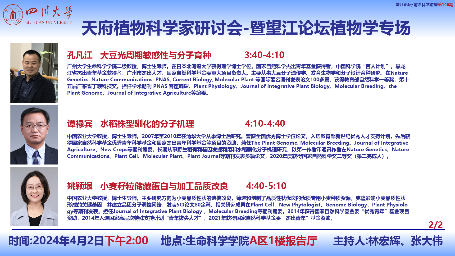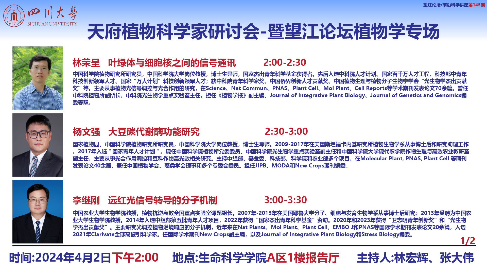 望江论坛-前沿科学讲座(第145期):天府植物学家论坛(4月2日)