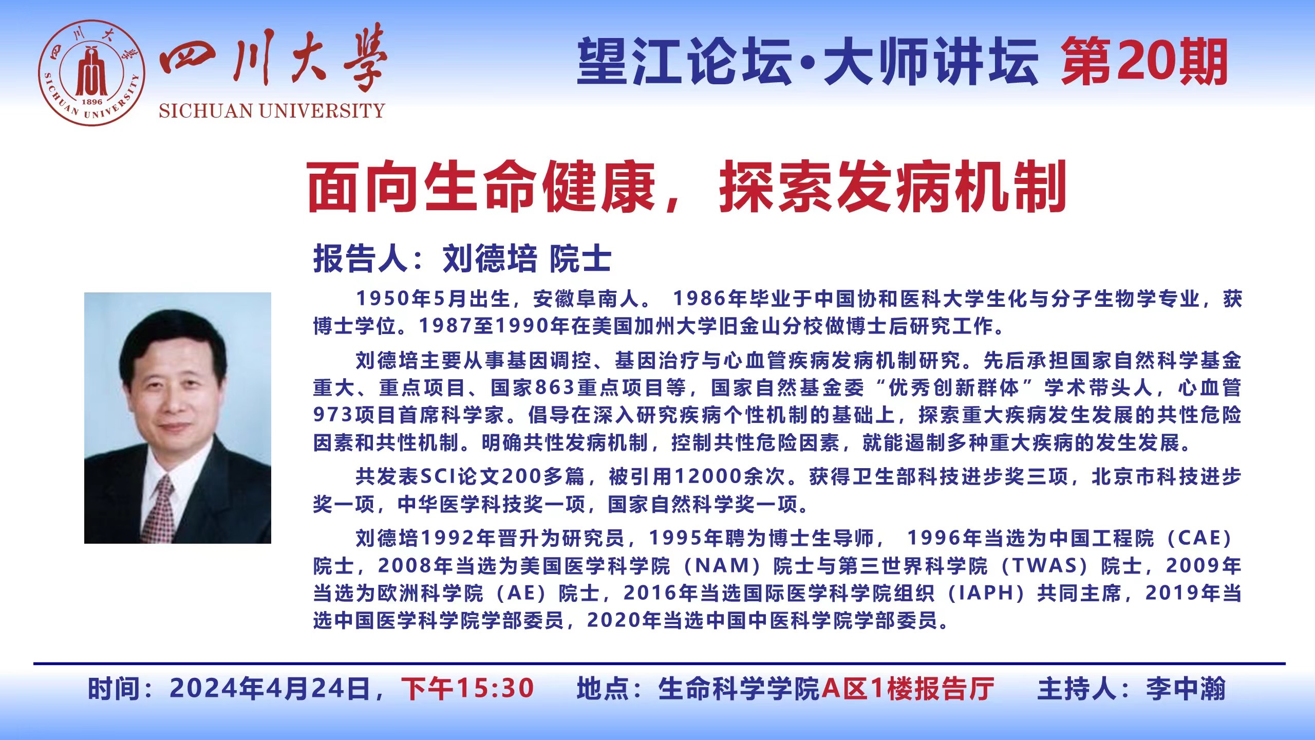 望江论坛-大师讲坛(第20期):刘德培院士4月24日学术讲座