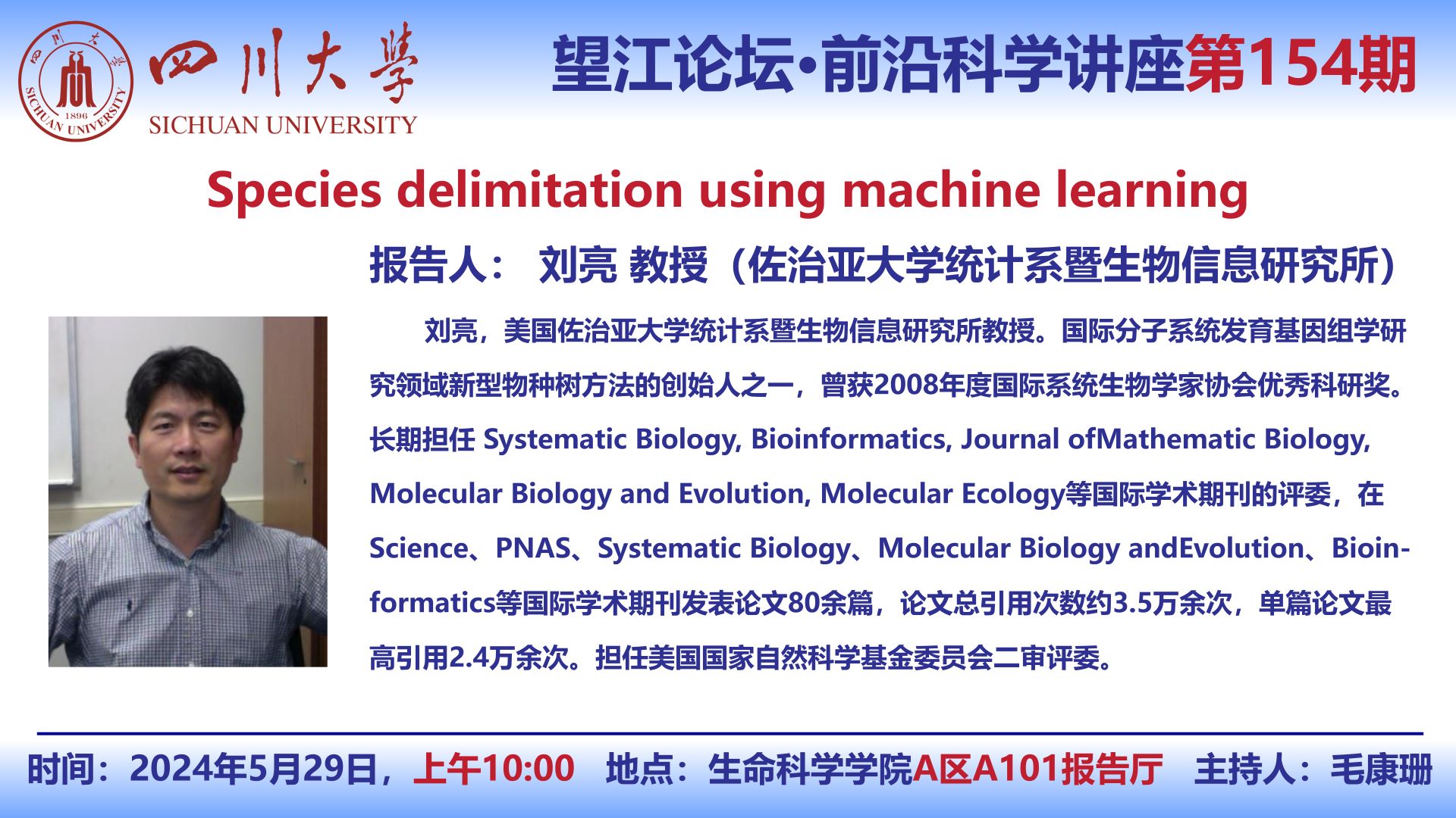 望江论坛-前沿科学讲座(第154期):刘亮教授5月29日学术讲座