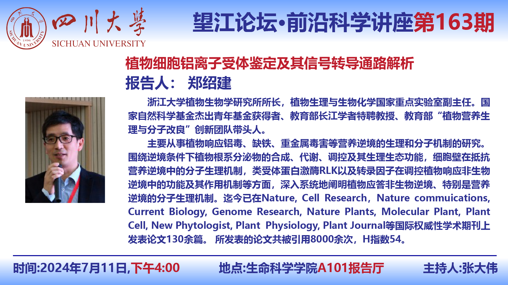 望江论坛-前沿科学讲座(第163期):郑绍建教授7月11日学术讲座
