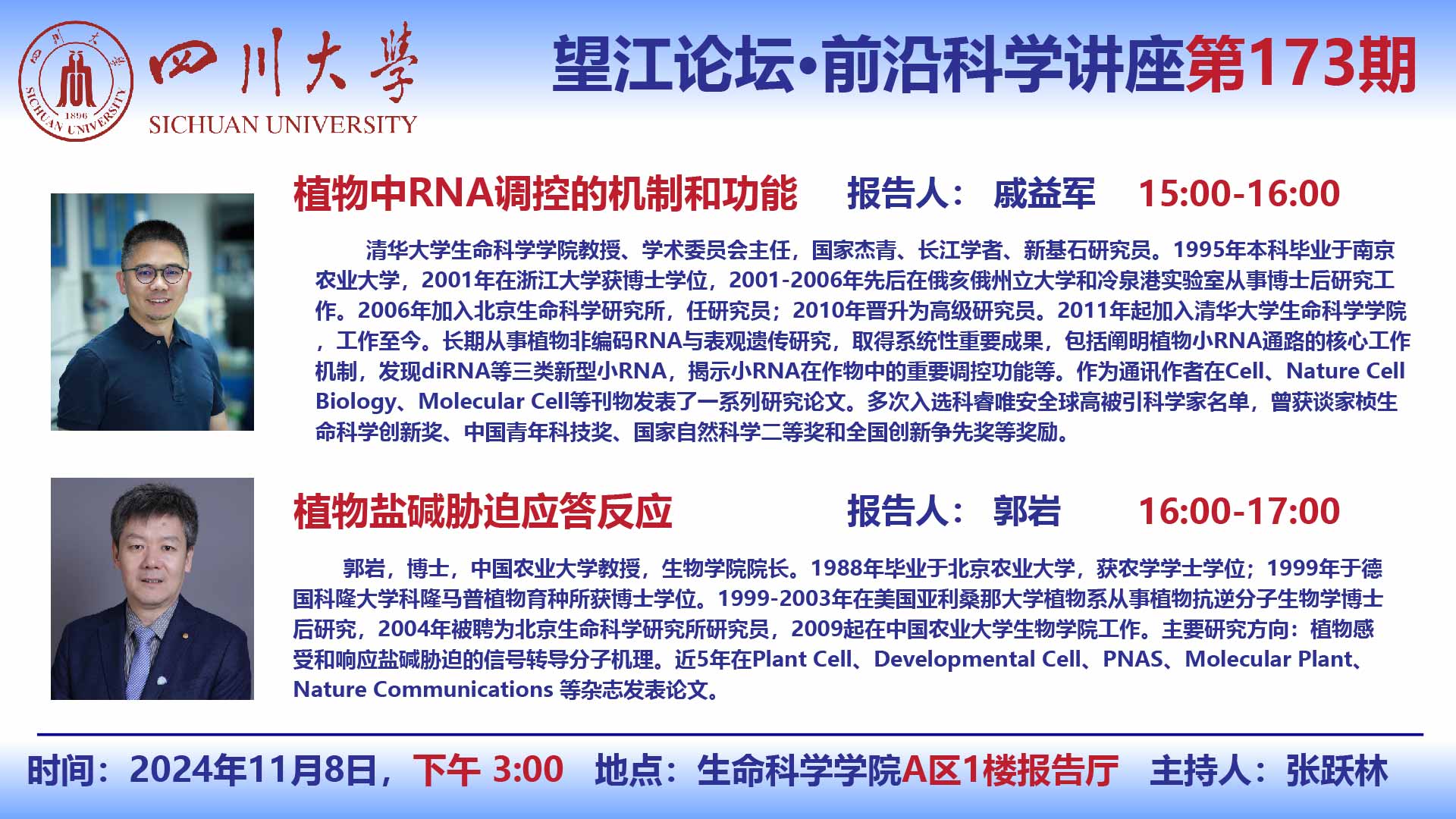 望江论坛-前沿科学讲座(第173期):戚益军教授,郭岩教授11月8日学术讲座
