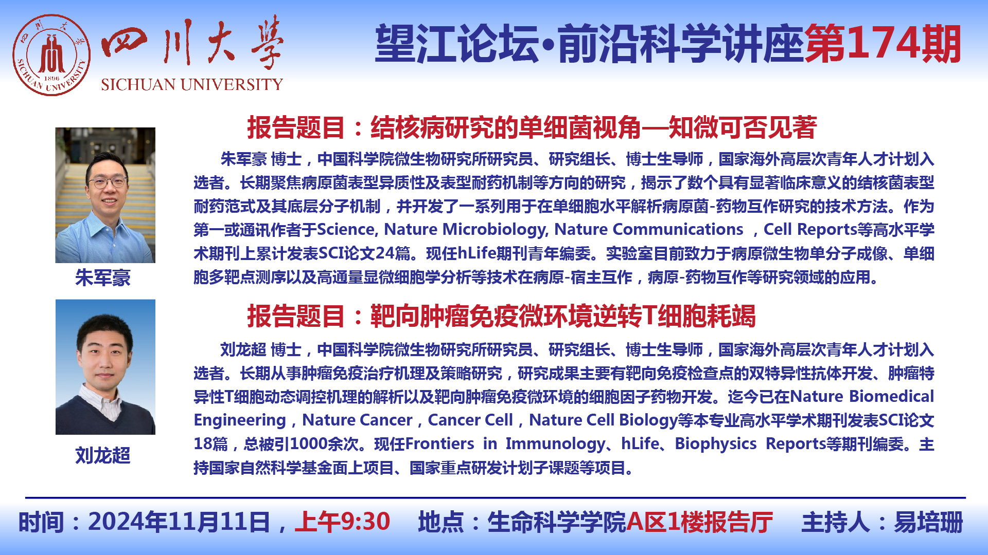 望江论坛-前沿科学讲座(第174期):朱军豪研究员、刘龙超研究员11月11日学术讲座