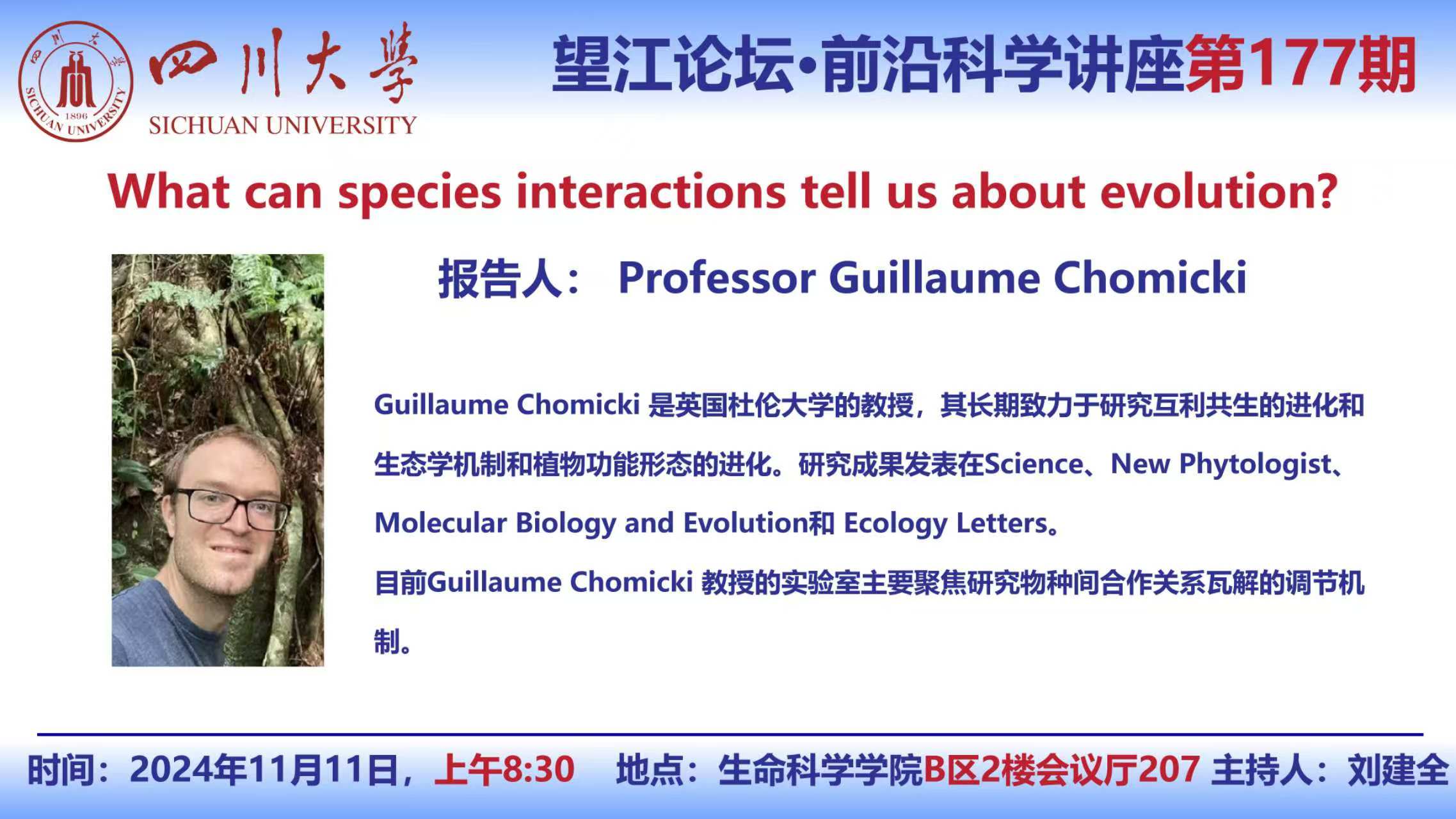 望江论坛-前沿科学讲座(第177期): Guillaume Chomicki教授11月11日学术讲座