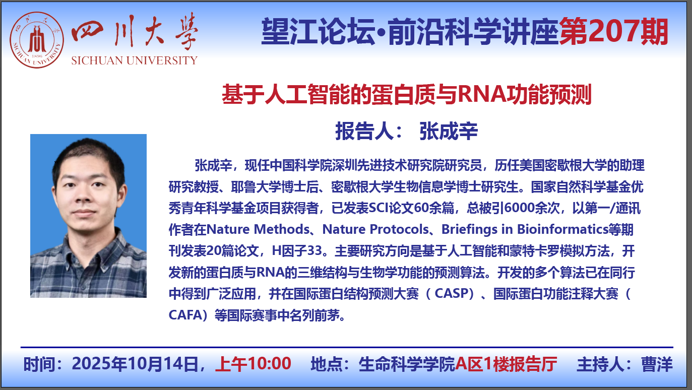 望江论坛-前沿科学讲座(第207期):张成辛研究员10月14日学术讲座