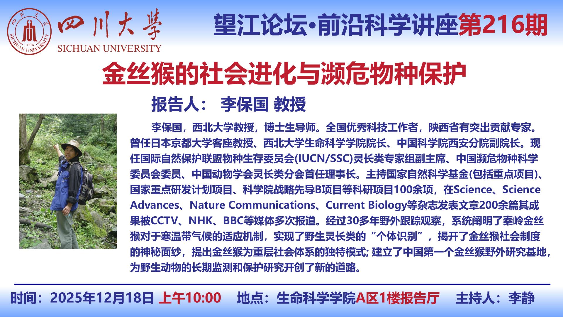 望江论坛-前沿科学讲座(第215期):薛莉博士12月16日学术讲座