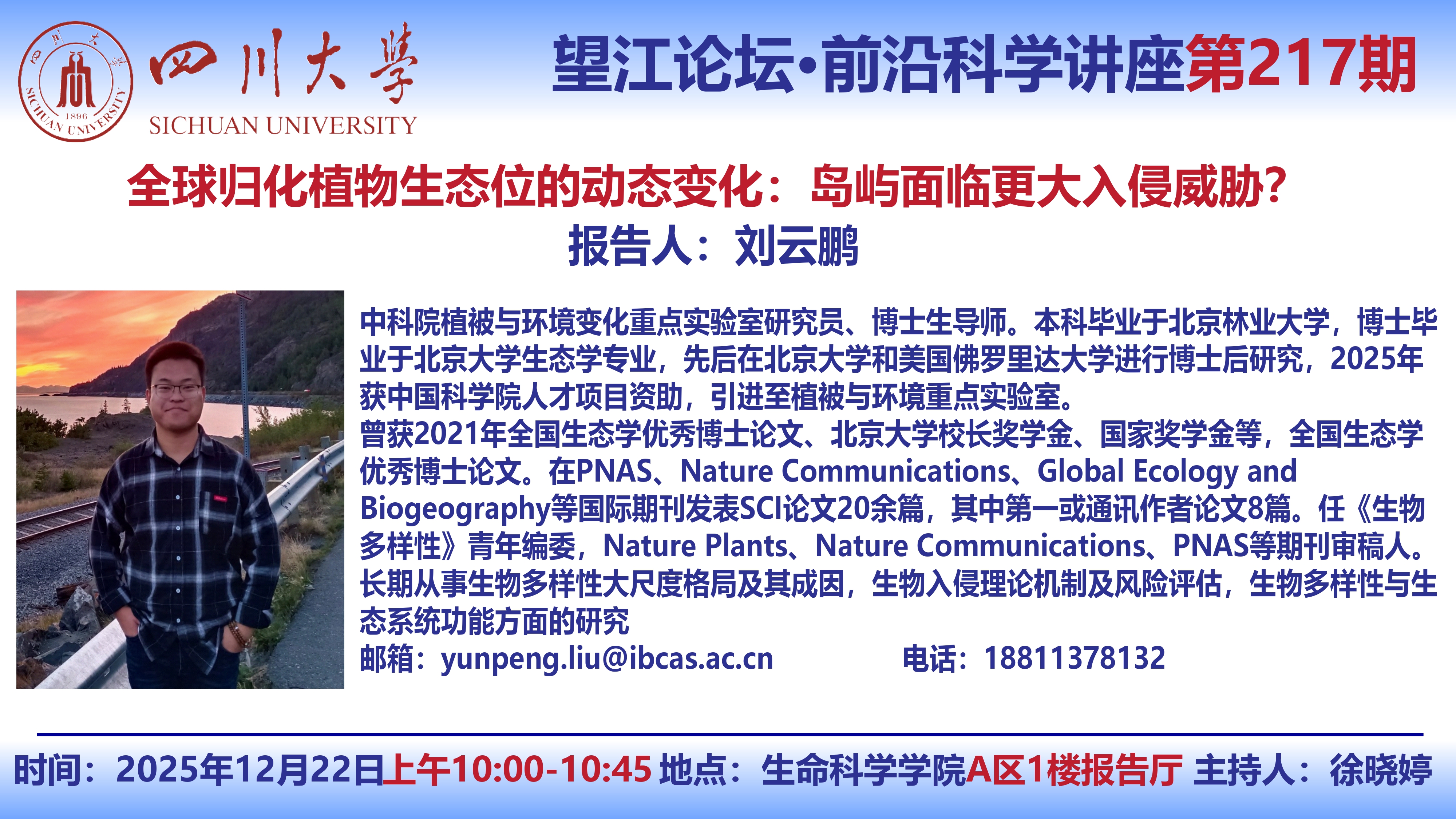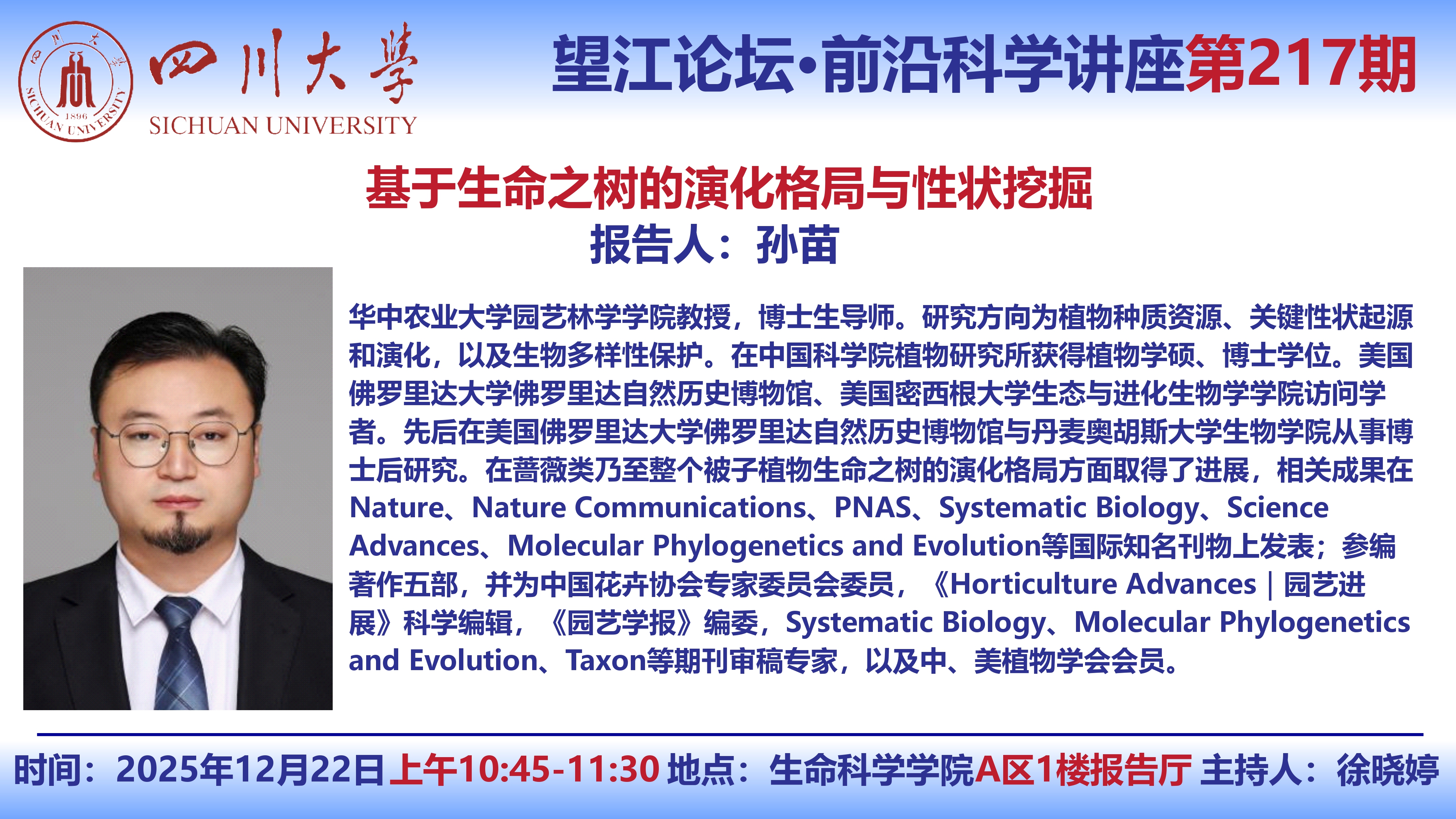 望江论坛-前沿科学讲座(第217期):刘云鹏教授、孙苗教授12月22日学术讲座