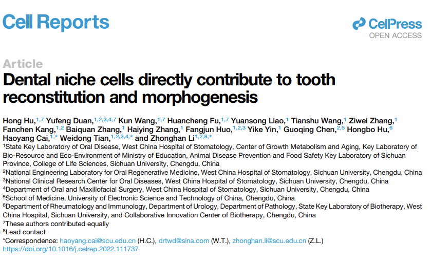 2022年12月6日,欢迎来到公海710李中瀚教授、田卫东教授、蔡浩洋教授的研究团队在Cell Reports上发表题为“Dental niche cells directly contribute to tooth reconstitution and morphogenesis”的研究论文。该研究通过单细胞测序,利用生物信息学技术,表征了从胚胎到出生后阶段(E12.5到PN7)磨牙发育过程中上皮细胞和间充质细胞的细胞动态变化,并结合DistMap方法高精度表征了在E14.5磨牙表达的基因位置。其中Sdc1被鉴定为牙乳头的特异性标记,而牙龛细胞表达其他特征基因。令人惊讶的是,体外牙胚重建和体内肾被膜移植结果显示牙龛细胞表现出比Msx1+Sdc1+牙乳头更强的牙齿诱导能力,并形成了成簇的牙齿,同时也表明Msx1+Sdc1+牙乳头细胞可以直接从牙上皮和牙齿牙龛细胞之间的相互作用中再生。在此基础上,研究人员进一步从牙龛细胞中鉴定了一组以前未被鉴定的Msx1+Sox9+细胞可能是牙乳头的细胞起源,在发育过程中迁移并取代了原始的牙原基。综合上述,该研究表结果表明牙龛细胞直接参与了牙齿的器官发育,可以为进一步开发牙齿生物工程重建新技术提供重要理论支撑。