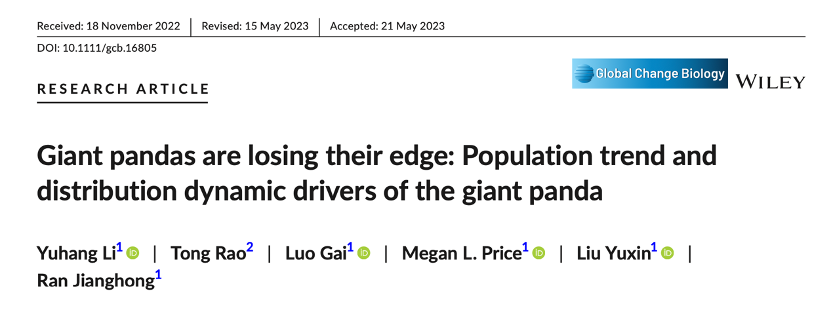 重点实验室冉江洪教授课题组在《Global Change Biology》杂志在线发表大熊猫研究成果