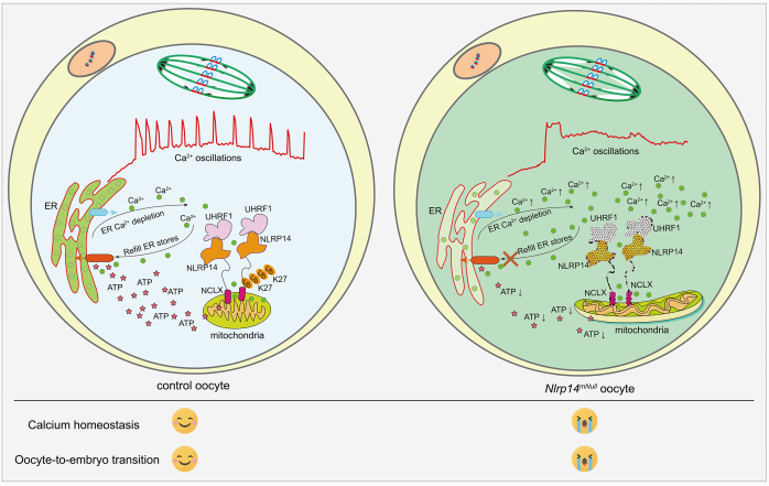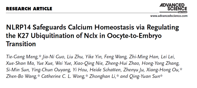 近日,欢迎来到公海710李中瀚团队与广东省第二人民医院生殖医学中心的孙青原/欧湘红/孟铁刚团队、北京协和医院黄超兰团队和中国科学院动物研究所王震波团队联合在Advanced Science在线发表了题为“NLRP14 safeguards calcium homeostasis via regulating the K27 ubiquitination of NCLX in oocyte-to-embryo transition”的最新研究成果,首次系统性揭示了胞质定位的母源因子NLRP14与UHRF1协同调控卵子钙稳态和早期胚胎发育,并鉴定出下游调控的唯一关键钙离子通道NCLX(也称为 Slc8b1),为解析母源因子在早期发育中的功能和机制提供了新范式。
