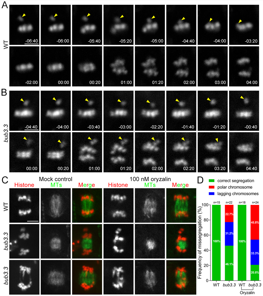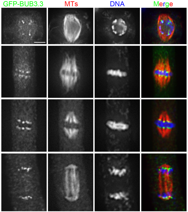 该研究发现,BUB3.3在整个有丝分裂过程中与动粒结合,这与其他物种中BUB3蛋白的行为模式有所不同。进一步的研究表明,当BUB3.3缺失时,会出现染色体错误分配和微核形成等问题,这提示了BUB3.3可能参与了细胞分裂的监控。