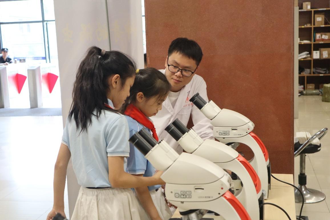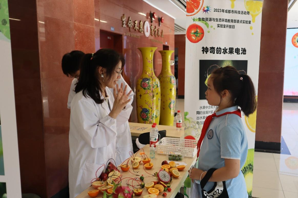 在结束实验室参观之后,小朋友们来到一楼大厅的“科普集市”,亲自动手感受生物科学的魅力和实验乐趣。来自公司各实验室的研究生志愿者们为同学们深入浅出地耐心讲解实验原理,同学们体验了“水果发电”“涡虫再生”等有趣的生物小实验;通过对微生物培养皿的观察,认识不同微生物的形态特征;观察昆虫的千姿百态,了解昆虫在生态系统中的重要性;在老师们的指导下,学习了如何识别四川省常见外来入侵物种的知识。